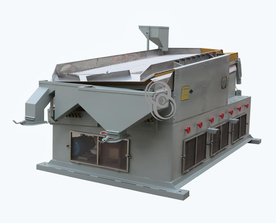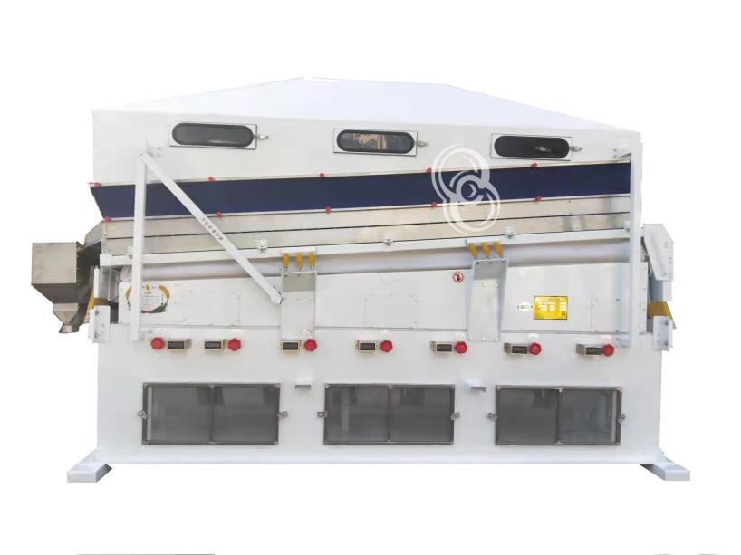 篩選體積相同而比重不同之豆類或谷類(如芝麻、綠豆、瓜子、種子等),去除未成熟與蟲蛀及破碎的豆類或谷類。不受場地限制,一般加工廠均可使用。可依物料顆粒大小、干濕度,調(diào)節(jié)速度進行篩選。此機型可單機使用,配合整廠設(shè)備(如選石機、大小選別機、磨光機…等)效果更佳。